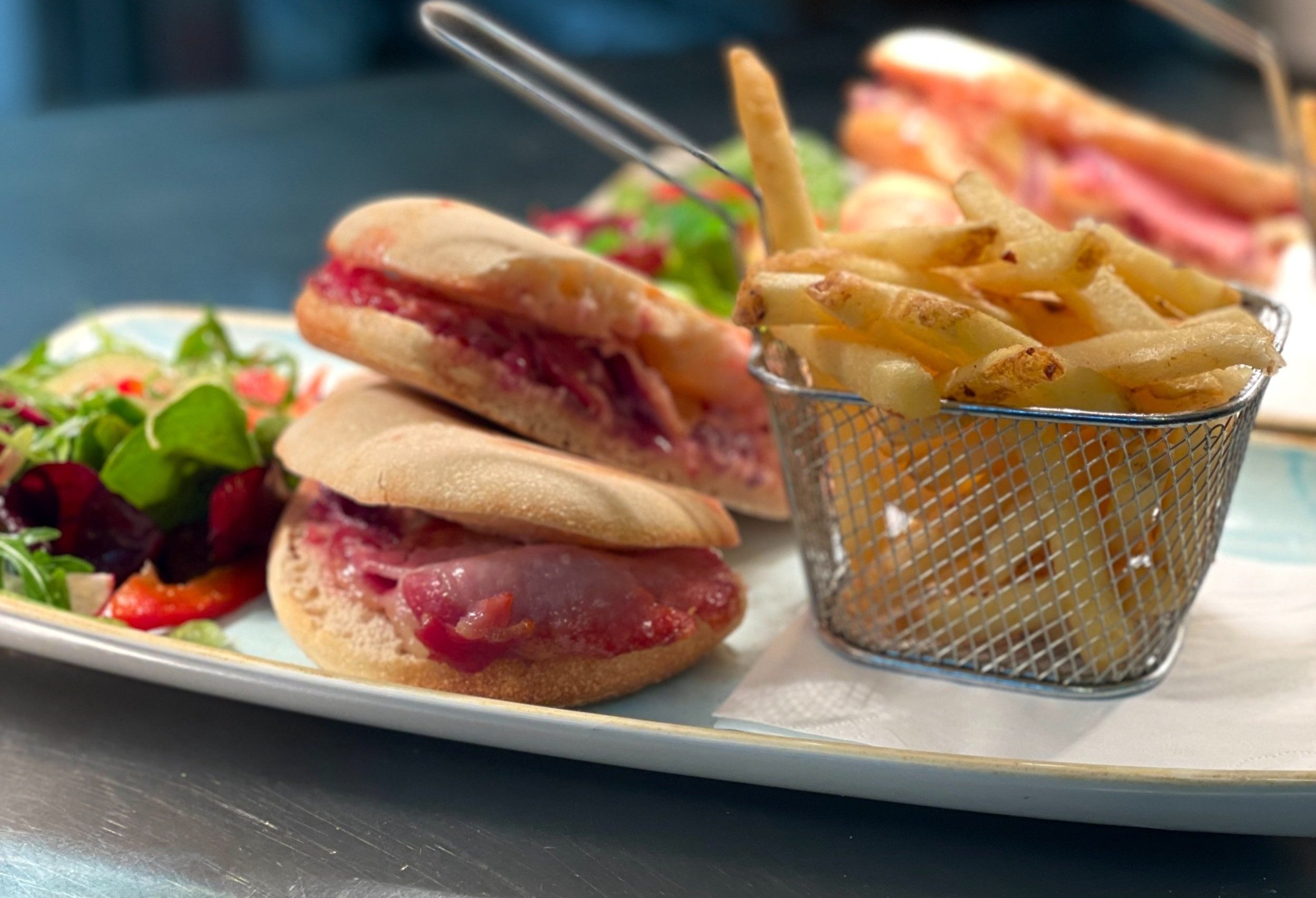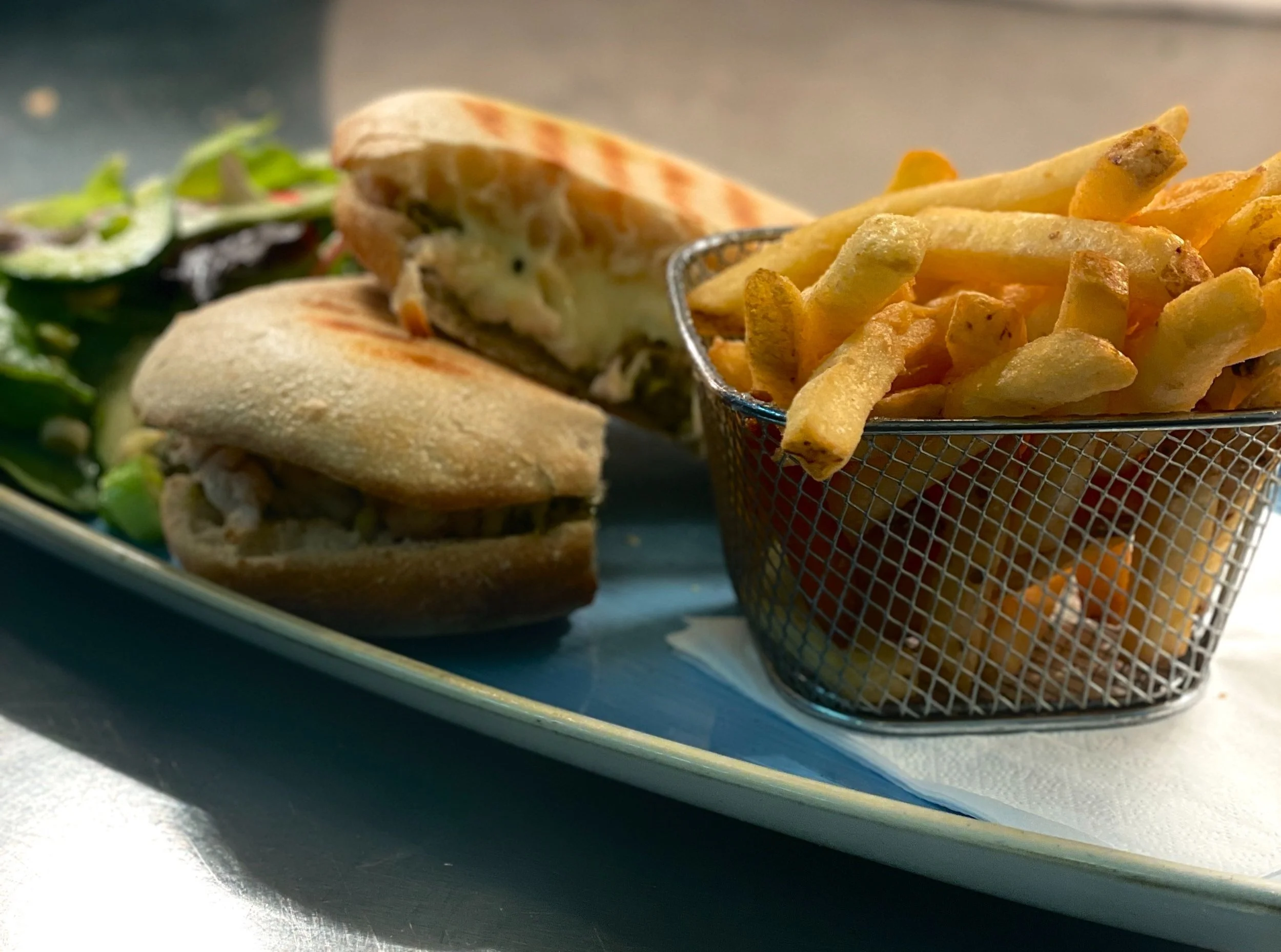 Breaded Chicken, Garlic Mayonnaise, Brie, Caramelised Onions